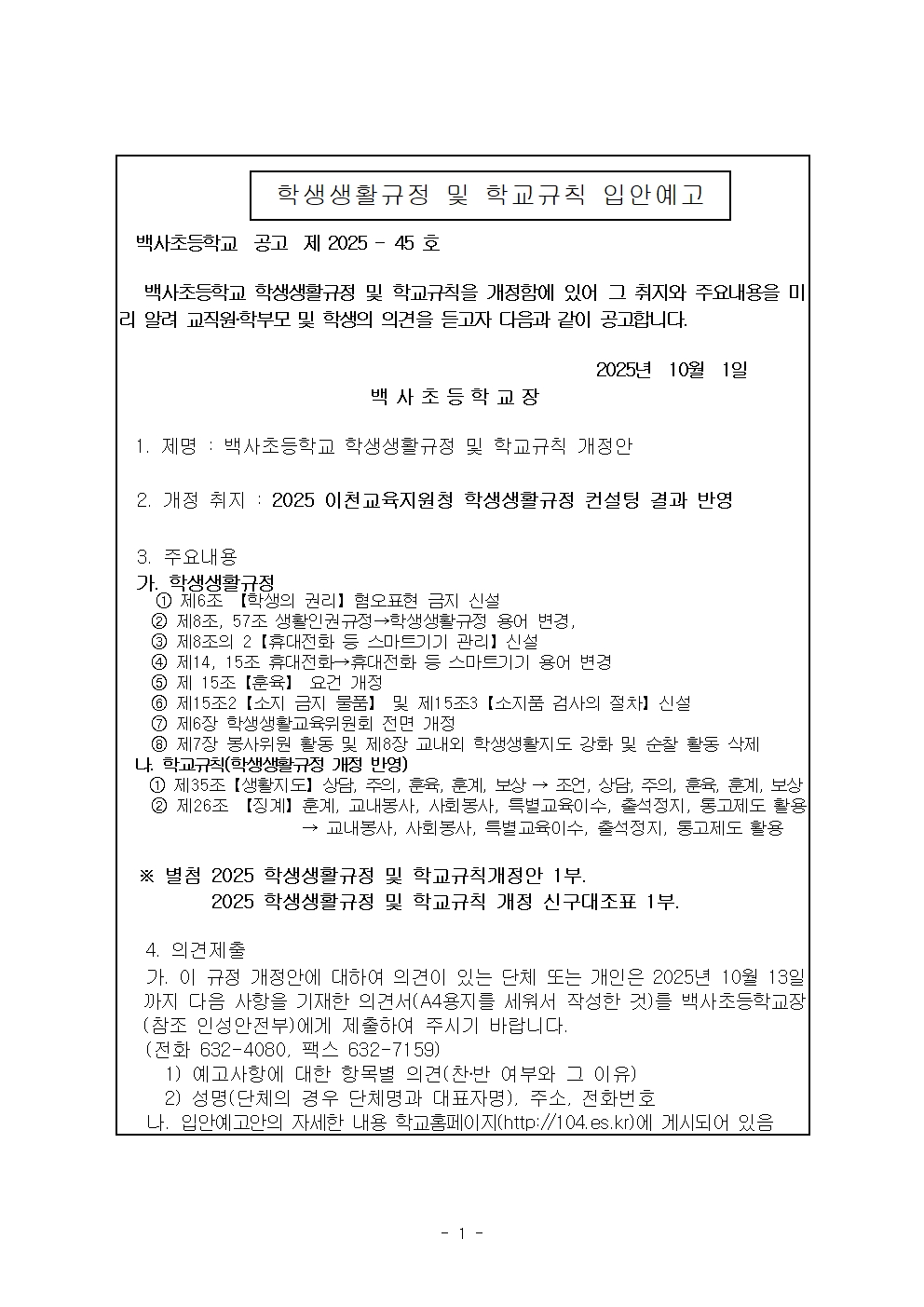 2025 학생생활규정 및 학교규칙 입안예고.hwp